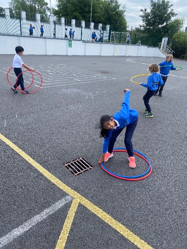 As part of Active Week, the students will have playground equipment every day at lunch, active lines, drop everything and move at ten and a different coach in everyday for PE. Daire from the tennis club came to teach the pupils, tennis.