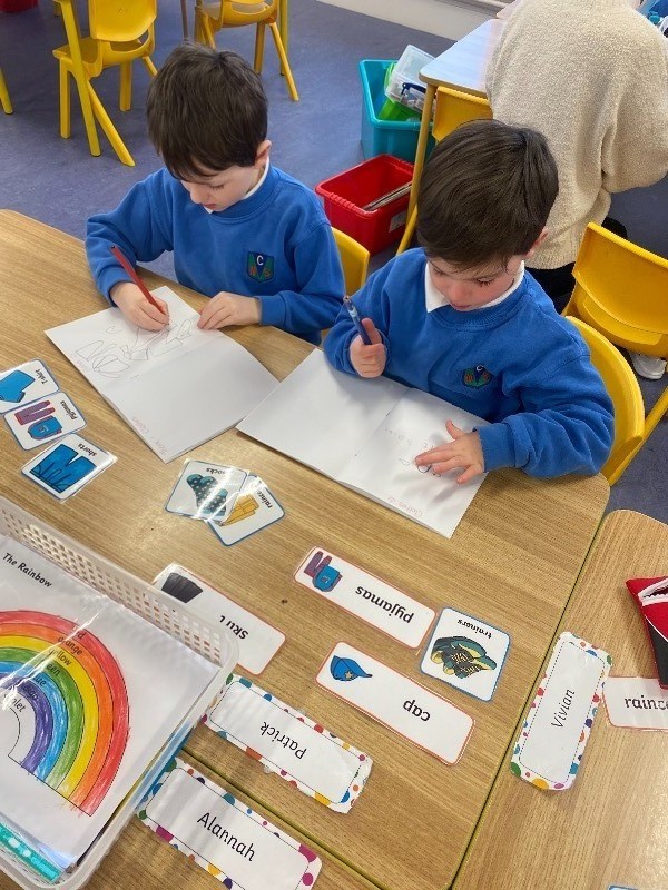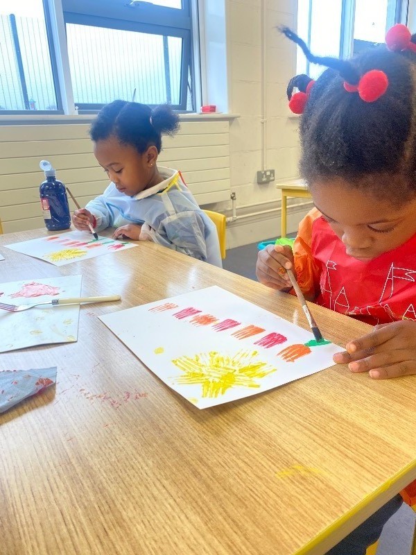 - Art: the children coloured beautiful rainbows. They also used forks to print spring flowers and a sun.